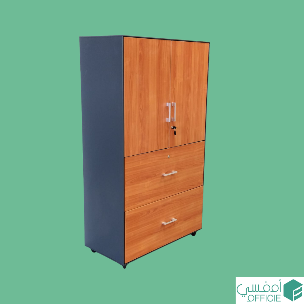 دولاب مكتبي متعدد الوظائف حيث تستطيع حفظ ملفات ومستندات العمل الخاصة بك بأمان وضمان عدم تعرضها للرطوبة والغبار والتلف بسبب تصميم وصنع هيكله المعدني القوي المطلي باللون الرمادي الجميل .